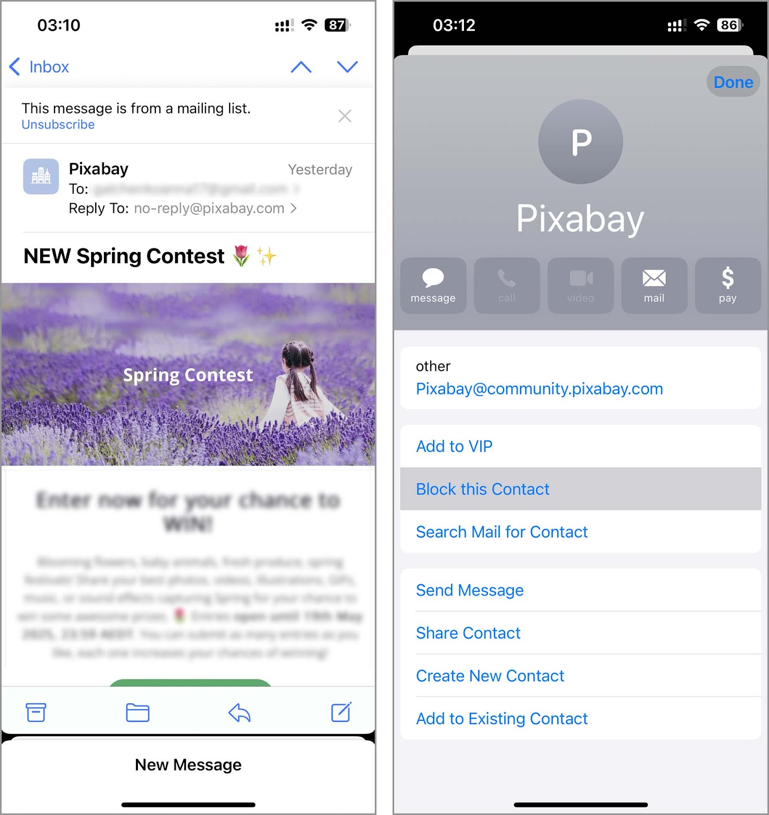 If unsubscribing doesn’t work or there’s no option to do it, you can block the sender entirely. Once blocked, their emails won’t land in your inbox or even your junk folder, so you won’t see anything from them again.