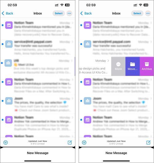 Step 2 - Swipe left on a message to reveal options like “Trash,” “More,” or “Archive.”Step 2 Tap the search bar at the top