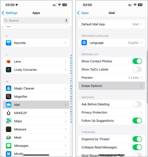 Step 3 – Tap Swipe Options.step three junk mail
