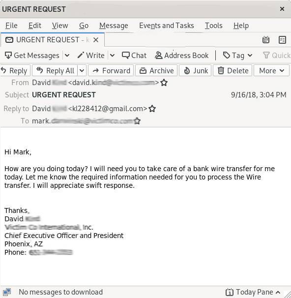 • Unfamiliar attachments or links are a no-go. Hover over links—in other words, without clicking—to see if they're legitimate.BEC Fraud ExampleBEC Fraud Example